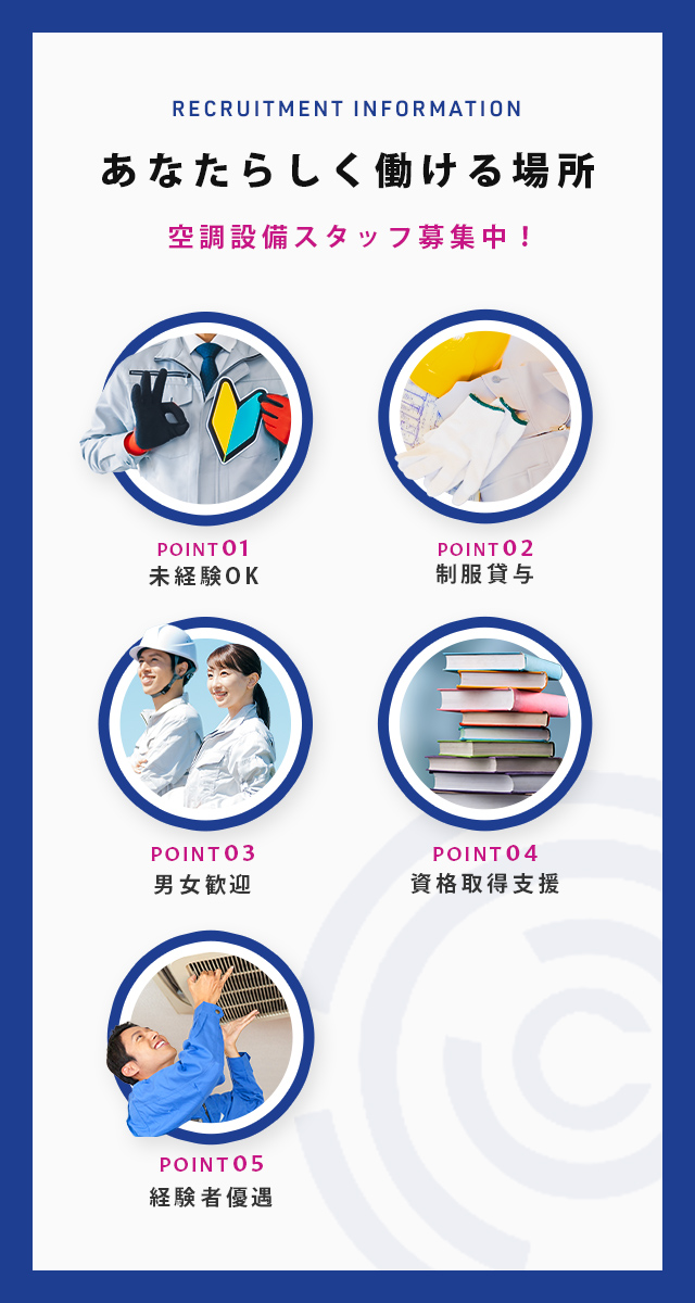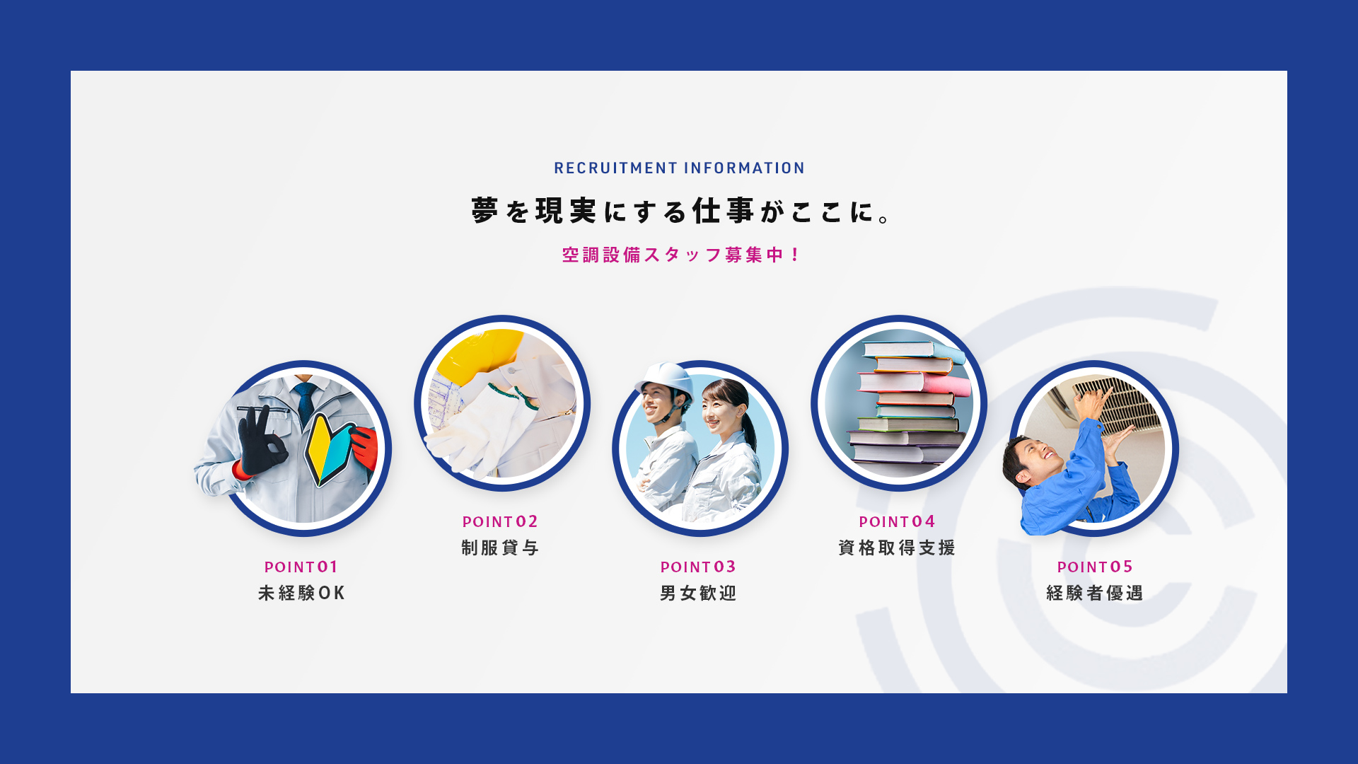 空調設備工事の経験をお持ちの方や施工管理技士の資格をお持ちの方を優遇しています。過去の経験が、未来の挑戦における強力な武器になります。私たちは、経験を持った方々に対して更なるキャリアアップの機会を提供しており、将来的なポジションアップや新しい分野での活躍を目指す方をサポートしています。一緒に成長し、業界の未来を創りましょう!