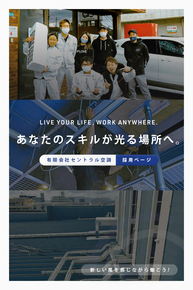 有限会社セントラル空調は、経験豊富な職人や先輩スタッフと共に、仕事をしながら技術や知識を学ぶことができる環境が整っています。初心者の方でも技術を向上させるためのサポートを充実させていますので、未経験者の方でも安心して働ける環境であります。一緒に空調設備工事のプロとしてのキャリアを築くための道を歩んでみませんか?
